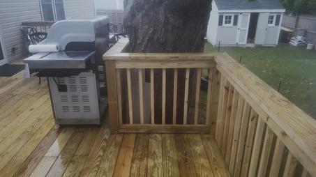 Have a tree in the way? We can build your deck around it. This customer didn't want to take this tree down so we built their deck around it. We customize your deck to suit whatever your needs are