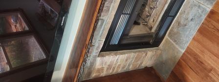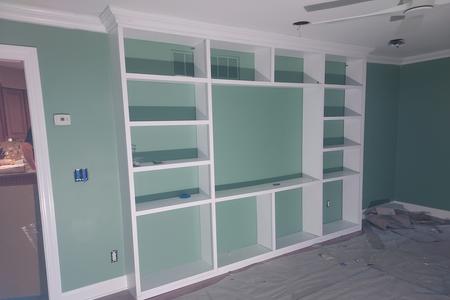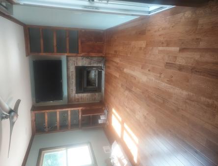 Home remodeling: Custom wall unit and fireplace, flooring installation. home remodel